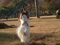 ![]() 「ちょうだい」を覚えたナビ。遊んで欲しい時や、 構って欲しい時(撫でて〜〜とか)にも 両手をあげて、オスワリをして「ちょうだい」ポーズ。 ・・・で「くぅん・・・」と切なく鳴く。 新聞を読んでいると、そばで何か鳴いているなぁ・・・と見ると ナビが両手をあげてみていたり。「物を」欲しい時だけじゃなくて 「何かして」欲しい時にも、使えるって思っているのかな? もうすぐ連休なので ナビに向かって 「休みになったら遊びに行く?」と言うと 既に「遊ぼう!行こう!」モードに(笑) 「バロン君と遊ぶ?」と言うと、今イチ判らないみたいですが 「翔ちゃんと遊ぶ?」は、判るらしい・・・。喜んでいます。 「おコメちゃん・モカちゃん」もわかるみたい。 12/1以来の、ワンちゃんとの交流だけど 上手く遊べるといいね。 2002/12/19 木 22:27 /