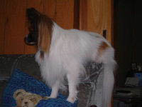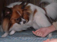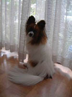 ![]() ↑の写真は、今日のナビ君です。(20時頃の) いつもは写真を撮り溜めしているので(^^;) デジカメに残っている写真から使えそうなものを ピックアップして掲載しているのですが たまには、リアルタイム(?)なナビを・・・と言うことで。 今日は、なんとなく「navi papillon」と言う検索ワードで調べて見ると、yahoo!で検索ヒット。 フランス在住のパピヨン「ナビ君」が存在するらしい。 すご〜〜〜い。と見に行ってみると そこに・・・・ナビが・・・・。 そっくりなの!!!!!驚くほどに。 外見も、額の白の狭さも、背中に斑が無いのも あごの下とか鼻の廻りに黒い毛がさしているのも 何もかもそっくりで、ホントにナビ(我が家の)が 知らない間に写真撮られているんじゃないか・・・と 疑ってしまうくらいに(笑)ビックリした〜〜〜 唯一違うのは、パリのナビ君は 超小柄みたいで(爆) そこは似ていなかったのね・・・ 以前にも、パピヨン関係のHPで「ナビちゃん(♀)」という トライカラーのパピヨンちゃんと出会いましたが、 同じ性別で、容姿も似ているなんて・・・。 母にも見せたのですが、同じような反応でした〜 2002/12/13 金 22:21 /