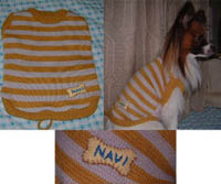 ![]() ナビの100均セーターに一工夫加えよう!と フェルト生地と刺繍糸を買って帰り、 骨型にくり抜いて、せっせと名前を刺繍。 頂き物のセーターにつけて出来上がり(>▽<) 製作時間15分の早業で出来上がったので アップではお見せ出来ないかも(爆) 他にも色違いのセーターがあるので 何かつけてみようかと思っているのですが・・・。 骨型以外に、良い形ってあるのかな??? 水玉模様もヘンだし、ハートも・・・ <薄い黄色と水色のフェルトだし やっぱり骨型かしら。うーん。。 2002/12/17 火 22:26 /
