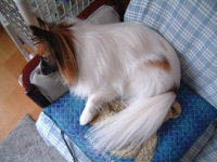 ・・・と言うわけで、ナビも高いところがスキ(爆) ソファーの上、大好き。ソファー+クッションの上、もっと大好き。 『山田クン、座布団1枚っ!!』ってカンジで乗っている。 横にしてあるクッションだけでなく、 ソファーの背もたれに立ててあるクッションも好き。 何もそんな所に登らなくても・・・と思うのに 立てたクッションによじ登って、重さに耐えかねたクッションが ずるずると雪崩を起こしても、そこが好き。 最近お気に入りなのは、ソファーの背もたれの上。 リビングでナビが上れる中、イチバン高いところ。 幅10cmほどの背もたれに、ヒラリと登って座る。 あまりにも狭くて居心地もバランスも悪そうなのに とりあえず登ってみる。 リーダーに成り上がりたいのかもしれないね。 ![]() 2002/12/10 火 22:18 /