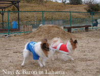 ![]() 朝から牛窓のラハイナへ。 近くて遠い「車で30分圏内」に住んでいながら 未開の地だったのよね・・・。 yokoちゃんと、バロン君・翔ちゃんと一緒でした。 ドッグランは朝から大勢のワンコ達でにぎわい。大型犬が多かったなー。 バーニーズ・ラブ・ゴールデン・アフガン。パピヨンの子も居ましたよ!! とっても小さいの。いぶきちゃんだったかな? 2kgほどしか無いんだって。 翔チャンよりも小さかったからね・・・。 ナビは、小型犬用スペースから慣らしてみようと 貸し切り状態の柵内に入ってノーリードに。 初めて外でノーリードにしたので どうかなぁ・・・とドキドキしていると ひたすら地面の匂いを嗅いで、マーキングの嵐(TT) それって、放している意味ないんですけど・・・。 暫くすると、私の声も耳に届くようになったのか、 「走る?」と声を掛けると、嬉しそうに 一緒に隣を走り回る。1匹では走らないのよね(^^;) いぶきちゃんや、バロン君、翔チャンとも 隙を見て クンクンとビビりつつも近づいていました。 呼び戻しの声も、殆ど耳に入らなかったので、 どうかなぁ・・・と思いながら、車にロングリードを置くために yokoちゃんにナビを頼んで、柵から外へ出たら ナビは置いて行かれると思ったのか、 それからは呼べば慌てて着いてくるように(^m^) 大丈夫かなー? って頃に全犬種スペースへ入る。 ・・・けど、あまりに体格の差があったからか パピ・チワが入った途端、皆さん帰られてしまった・・・。 一緒には遊ばせられない、って事?(涙) 落ち着いた年齢の方が多かったので、 ワカモノと小型犬だと、信用が無かったのかもしれないが。 テリア種の子(中型)と、アフガン1頭が残っていたので、 少し側で遊ばせて貰いました。 全犬種側のスペースは、広くて坂道もあって 遊び甲斐がある。 最初はテリアの子やアフガンの子に興味があったナビも 近づいてこられると怖くなったのか 立っている私の足の間から顔をだして 逃げ回っていました(^^;) 大きい子にも慣れている、バロン君とテリアのダイちゃんとの ちょっとしたバトルも間近で見てしまって かなりビックリしたらしい・・・。 12時頃からは、ペンション側でランチ。私は、ピラフと卵ごはん☆ yokoちゃんは、カキ食べ放題! カキを少し貰ったのだけど、やっぱり美味しいね。 のんびり食事をして、オーナーさんとお話をして楽しく過ごせました(^^) また暖かいときに、思い切り遊びたいなー。 2002/12/23 月 22:29 /