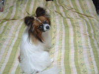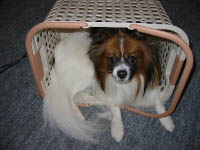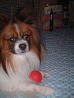 ![]() 自分で作ったパピヨンカレンダー、 先月はサム君が年始TOPを飾って、今月はパピ君が登場です。 半年ほどしか経ってないのに、すでに今のHPの写真と比べると ずいぶん成長しているような気がする。 やっぱり子パピちゃんは、目に見える変化が大きいですねー。 特に、5・6ヶ月から1歳頃の間は、どんどんコートが伸びて、 貧弱ちゃんから変わりますもんね。 ナビにも「バンビ」な時期があったかと思うと(>m<) 最近、雨が降ったりで散歩が出来ないことがある。 その分 家の中でボール投げや走り回ったりして ストレス発散をしていたのだけど、 このところ、寒いからリビングの続き間のドアを閉めていて ボール遊びをするスペースも無い・・・。 ナビは、と言うとコタツの足元で丸まってフテ寝? もうすぐ2歳を迎えるし、これは「落ち着いた」と言うのかなぁ? 諦めが良くなったと言うのか、なんと言うのか・・・。 ちょっと寂しい気持ちもするのでした。 それでも、壊れたカエルの玩具の中に、 ごほうびの欠片を1つ入れてやると 夢中になって、カエルを追いかけて 「即席コング」で遊ぶんですけどね(^^;) 2003/02/05 水 21:55 /