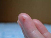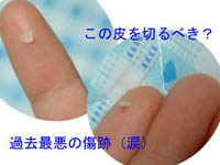 ずっとバンソウコウ貼っていたから、 どんな風になっているか見ていなくて・・・ (毎日消毒はしていたけれど) そろそろ皮もひっついてきたかなーと見てみたら 見事に浮いていた(T▽T)下はちゃんと止血もしていて、 新しい皮が出来ているし。 よくみると、やっぱり深いわ。 今回の。剥がれている皮も厚いし・・・。 ・・・って、こんな写真&話題でゴメンナサイ(>▽<)ノ"" ナビは、今日も元気!でした。仕事を終えて家に戻ると、 玄関のゲートを開けるまで ピョンピョン跳ねて歓迎。やっとゲートを開けて、 コートをハンガーに掛けに行くと 階段の下で大人しく待っているの。目が合うと尻尾ふりふりで満面の笑顔。 こーいう瞬間は、やっぱりシアワセだなーー。可愛いなぁーーって ものすごーーーく思いますね! ・・・どんなに指の傷が深くてもねっ(笑) ![]() 2003/02/18 火 21:12 /