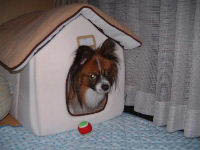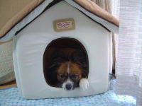 ![]() ナビの誕生日プレゼントをいただいた。 ゆーこさんありがとう(^▽^) 早速、開封して組み立ててみると ハウスじゃなくて、段ボールに興味を持つナビ(コラコラ) 布製ハウスに目が行くと、中に入ってクンクン。 屋根に登って(家を潰して?・爆)掘り掘り。 デカパピのナビにも余裕のあるサイズで、 本人も大満足の様子でした。良かったね 今使っているケージは小さすぎて、布製ハウスが入らないので 2階の私の部屋の中に「別荘」として置きました。 我が家で唯一の「別荘持ち」だわ(^m^) そして、私の風邪は停滞中(ズルズル) 仕事には行ったけれど、ネットは本日も1回休み。。。 2003/02/10 月 22:22 /