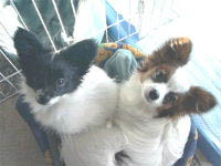 ![]() 画像BBSにもペッタン初登場!されていましたが、 あかりさんちの「ケイ君・スミ君」です。 あかりさんとは、昨年の7月頃からメールでお話しています。 パピヨンのケイ君(右側・白茶)を飼い始めたのが御縁で ワンの話とか、色んなお話をさせていただいています(感謝) 昨年末頃から、マダムパピヨン出身のスミ君(左側・白黒)と 兄弟仲良く家族4人(?!)で暮らされています。 HPを通しての知り合いの方も大切だし、 メールを通して知り合った方の存在も、本当にありがたいですねー。 今はHPを作られている方の中にも 最初はメールを通してお話していて その内ワンのHPを作られた。と言う方も沢山いて ワンコを通した人の繋がりとか、その人の生活が変わるのとか (HPを見る側から運営する側になったりとか) 見ていてスゴイなぁーーと思います。ワンの影響力が。 私も、ナビと出会わなかったら、 ケイ君・スミ君とも出会わなかったんだろうなー。 本当に、不思議な縁ですよね。 これからも、ワン友さんも、そうじゃないネット友さんも 末永く宜しくお願いします<(_ _)> ぺこりー 2003/02/14 金 22:40 /