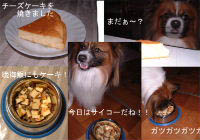![]() 今日でナビは2歳を迎えました(^▽^) この2年間、本当にあっ!!と言う間でしたね。 犬を飼いたい一心で両親を説得して(15年間に渡り・・・) やっと出会ったナビ。 もーーーー、可愛くて可愛くて可愛くて可愛くて・・・。 食べちゃいたい位に可愛くて(笑) 腹の立つこと(自分自身だったり、言葉の通じないナビにだったり) も、色々あったけれど それでもやっぱり可愛い。 これからも健康で楽しく暮らして行こうね。よろしくね。 今日は朝から雨。車を車検に出す予定で、家に代車しかなかったので 遊びにも出れず・・・。ケーキを焼いたりしていました。 犬用ケーキ。ヨーグルトチーズケーキでした。 私が見て「美味しそうー」って思ったのと レシピ集の中でワン受けがイチバンよかったと書いてあったので 材料を買ってきて作ってみました。うん、 ハンドミキサーがあれば簡単だし美味しそうー ・・・ところが、これがスッパイの!! 甘味がハチミツ大さじ1杯しか入っていないんだから、当然か(^^;) ナビにあげてみると、大喜びでガツガツ食べる。 小さな欠片を何個か用意していたのですが 「もっと!食べるー」とオネダリ。そんなに美味しいかなぁ??? ワンの味覚は私にはまだワカラン・・・。 プレゼントは明日にでも買いに行こうかな。 さてさて何にしようかなぁ・・・。 2003/02/22 土 22:22 /