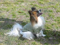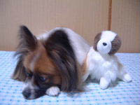 その一部に「パピヨン」の記事がカラーで出ていた写真は白黒の子犬。 「体高28cmで、体重5-6kg」って書いてあった?? 体高はもっと高いけれど、体重は規定内よ(爆) パピヨンは見かけとは裏腹に活発で運動量が多いとか 丈夫で物覚えが良いとか書いてあった(たしか) 抜け毛が少ないっていうのも、いつもの事ながら書いてあったかなー。 物覚え・・・良いと思うわ。 お手・おかわり・お座り・フセ・待て・アゴ ・・・の辺りを教えるのは、あんまり苦労しなかったもん。 トイレはマーキングもあって、困ったけど(^^;) でも「こうしたから、ご褒美がもらえる。誉めてもらえる」 と言うのを自分で考えて行動出来ると思う。 最近のナビさんを見ていて、凄いなーと思ったのが 骨型のお気に入りの玩具(コングもどき)にフードを1粒入れると それを口でくわえて放り投げる。 過去に、放り投げたらフードが転がって出たらしく 自分で頑張って出てこなかったら、ひたすら投げる(爆) 「どこどこ(おやつ探し)する?」と尋ねると コタツ布団の中に自分から潜って行き 「もう良いかい?」状態になる。 親ばか日記だけど、やっぱり「ズル賢い」なぁ・・って思うよ。 それを逆手に取ったら、しつけ易いんだけどね(^m^ 2004/03/02 火 22:53 /