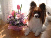 ![]() 今日は両親の結婚記念日! ・・・なので、仕事帰りに花束(盛花)とケーキを買って帰った。 ナビは私が帰った事よりも、おみやげに興奮(^m^) 誕生日以来のケーキに大喜びで、夕食が済んでから「まだ??ケーキは??」とソワソワ。 父が帰って一段落して、お腹も落ち着いたし そろそろかなぁ・・・とお茶の支度に行くと待ちきれなくてキュンキュン催促。 ショートケーキのセロファンについたクリームを貰う為に みんなの席を必死に回っていたよ。また一緒に食べようね(^▽^) ![]() 2004/03/12 金 22:59 /