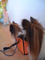 買い物から出かけた後に、空いたナイロン袋が出来ると 喜んで振り回している(^^; 軽く括ったものを投げるとブンブン振り回して走って。 結び目を解くのが楽しいらしい。 小さいころには、袋を破って食べようとするので 全部取り上げていたんだけど 最近は「食べない」ようになったので、安心してまかせっきり。 トイレシーツの外袋を捨てる時にもブンブン。 父が定期購読している雑誌の袋もブンブン。 なんでこんな物が好きなんだろうねぇ たくさんオモチャ、持っているのに・・・。 2004/12/12 日 22:51 /
