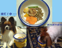 母とナビと揃ってゴハンを食べていたら、父が帰宅。 いつもは喜んで玄関で「ヒュンヒュン」と鳴いてお出迎えなのに 私がゴハン食べていると椅子から降りない(爆) ゲンキンだよねぇ。。。 で、父が食卓につくとそっちに鞍替え(≧▽≦) 今日はオクラとサツマイモの天ぷらがあったので おこぼれを少し貰っていた。 ゴハン(白米)は炊き込みだったからNG。 食べ終わったころに、兄ちゃんが帰宅して、 いつもなら兄ちゃんに おねだり しないのに 今日は「サツマイモ頂戴」と椅子の下から熱い視線を送り 「天かす」を貰っていた(^m^) とっても安い男、ナビ なのでした♪ 2004/12/07 火 22:47 /
